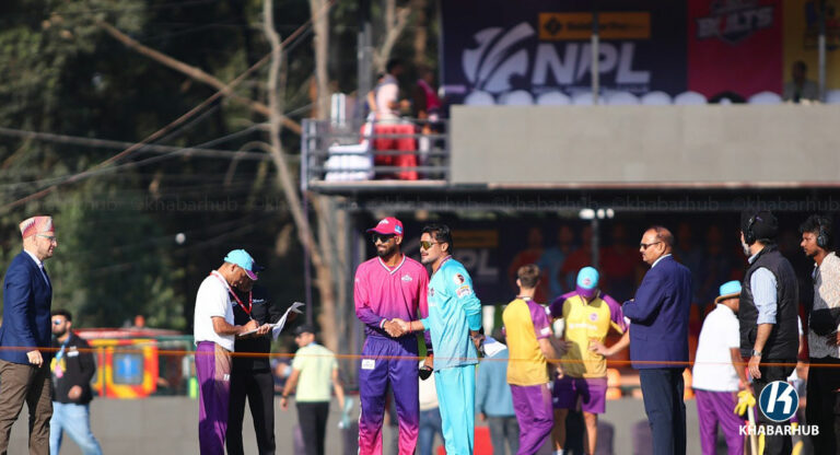 काठमाडौं – दोस्रो संस्करणको नेपाल प्रिमियर लिग (एनपीएल) को उद्घाटन खेलमा साबिक विजेता जनकपुर बोल्ट्स र काठमाडौं गोर्खाज प्रतिस्पर्धा गर्दैछन् । अपराह्न ४ बजे सुरु हुने खेलमा काठमाडौंले जनकपुरविरुद्ध टस जितेर पहिले बलिङ रोजेको छ ।