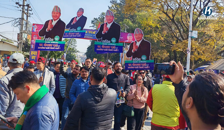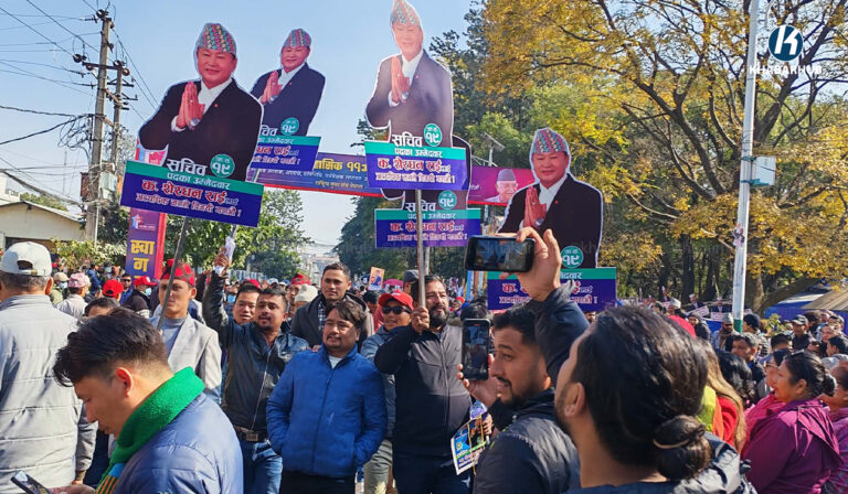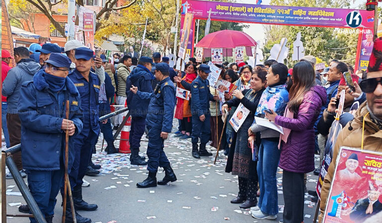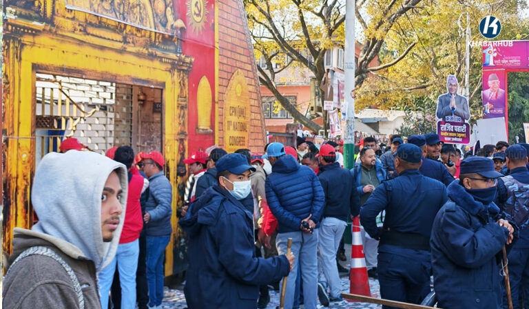 काठमाडौँको भृकुटीमण्डपमा जारी मतदानमा पार्टीको केन्द्रीय निर्वाचन आयोगले प्रबन्ध गरेको विद्युतीय भोटिङ मेसिनमा मतदान भइरहेको हो ।
