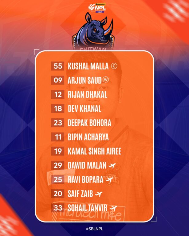 काठमाडौं – नेपाल प्रिमियर लिग (एनपीएल) अन्तर्गत दोस्रो दिनको पहिलो खेलमा चितवन राइनोजले टस जितेर फिल्ड रोजेको छ ।