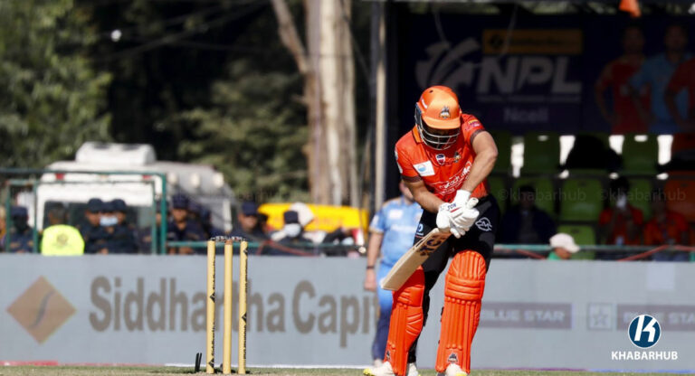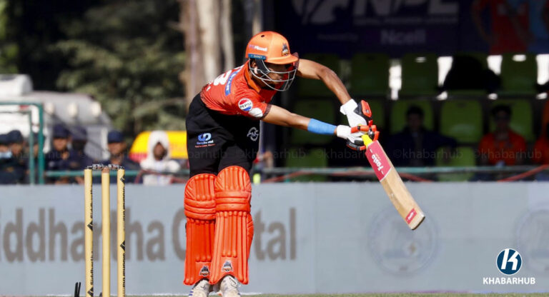 कीर्तिपुर मैदानमा टस जितेर १७६ रनको लक्ष्य पछ्याउँदै ब्याटिङमा उत्रिएको चितवनले खेल ९ ओभर दोस्रो बलमा पुग्दा तीन विकेट गुमाएको हो । उनी ३६ बलमा ६ चौका र १ छक्काको सहयोगमा ४२ रन जोड्दै आउट भएका हुन् ।