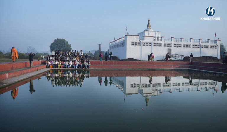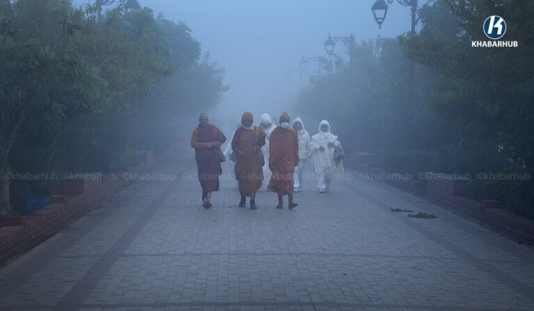 लुम्बिनी– पुस महिनाको सुरुवातसँगै चिसो बढेपछि गौतम बुद्धको जन्मस्थल लुम्बिनीलाई तुवाँलोले ढाकेको छ । तुवाँलोबीच पर्यटकको चहलपहल भने उस्तै छ ।