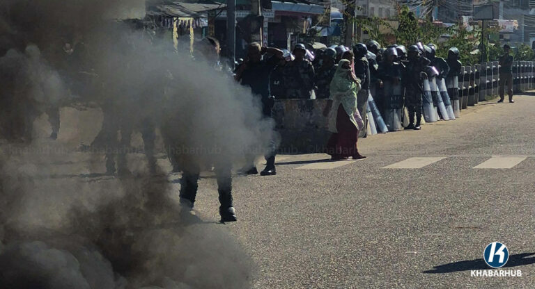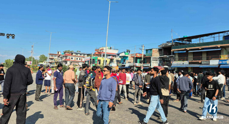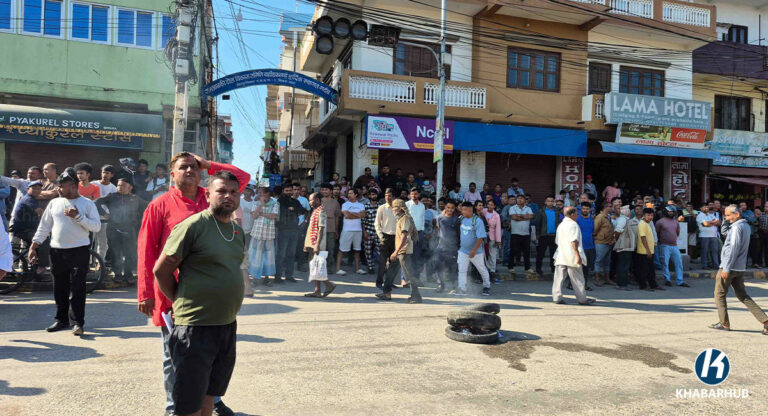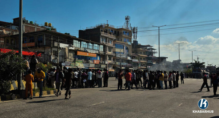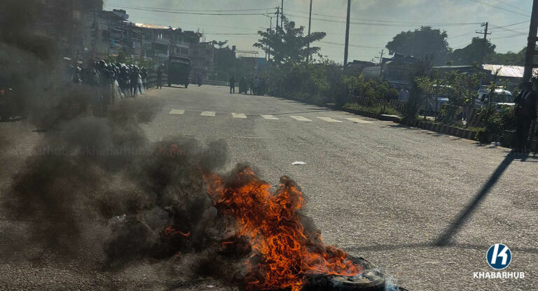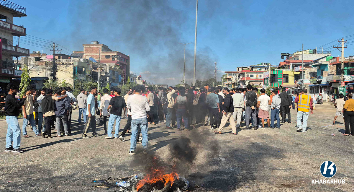 प्रदर्शनमा उत्रिएका जेन-जी समूहले सडकमा टायर बालेका छन् । प्रदर्शनकारी र एमाले कार्यकर्ताबीच झडप हुँदा यस क्षेत्रको अवस्था तनावग्रस्त बनेको छ ।