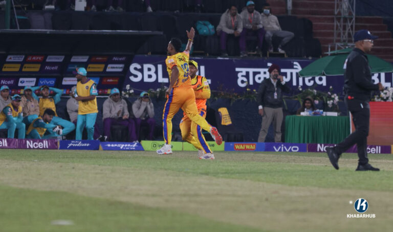 पाँचौँ ओभरमा पुग्दा काठमाडौंले ३ विकेटको क्षतिमा ४० रन जोडेको छ । तेस्रो विकेटका रुपमा अर्का ओपनर आकाश त्रिपाठी पनि सस्तैमा आउट भए ।