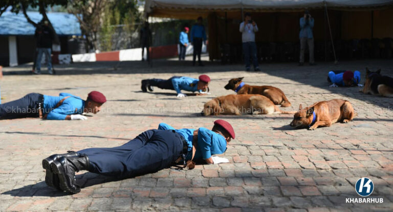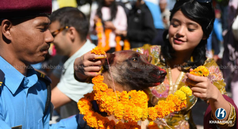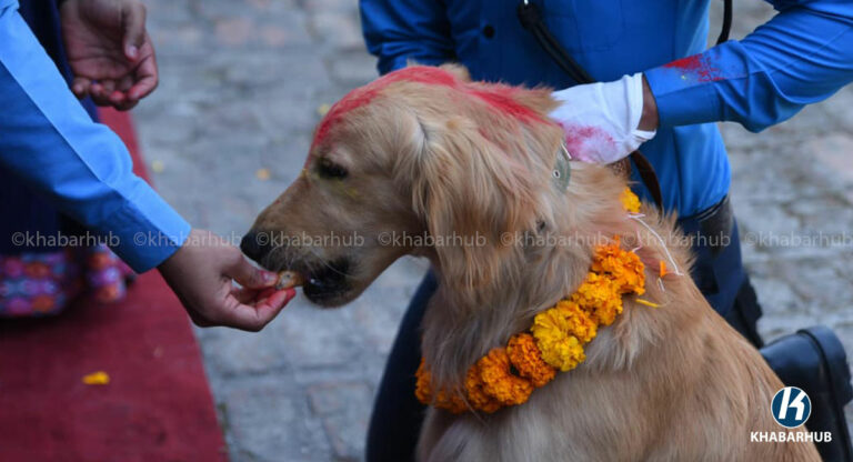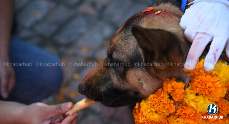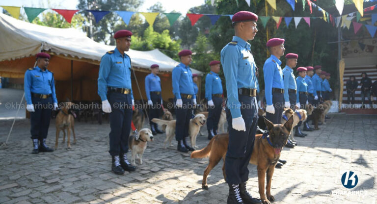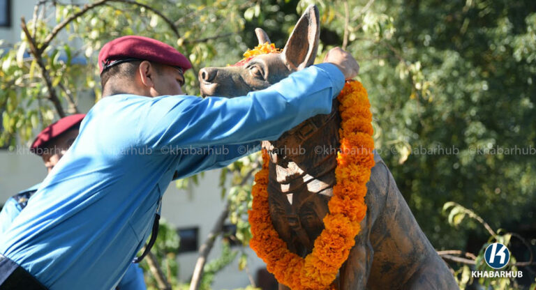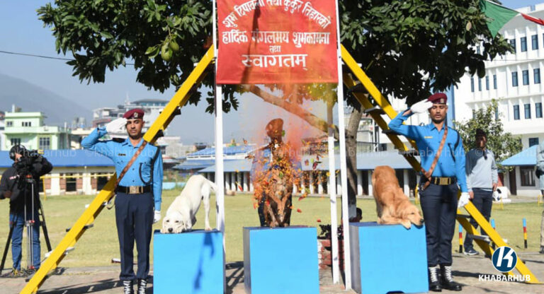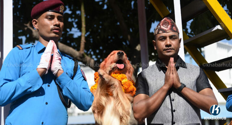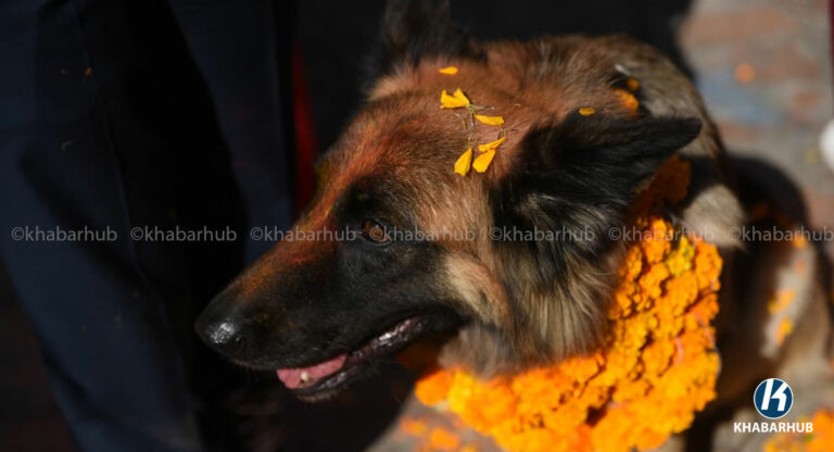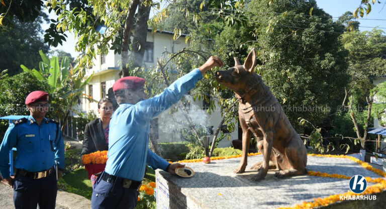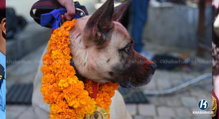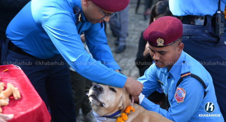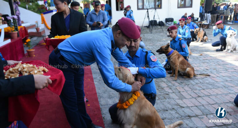 काठमाडौं– नेपाल प्रहरीले सेवा कुकुरसहित कुकुर तिहार पर्व मनाएको छ । यस अवसरमा कुकुरहरूलाई माला, टीका र विशेष भोजन अर्पण गरेर पूजा गरिन्छ ।