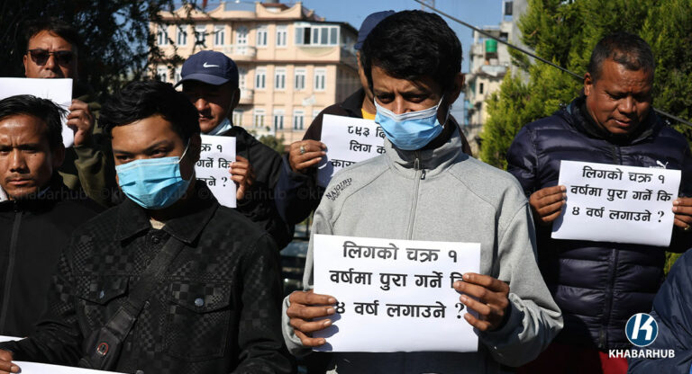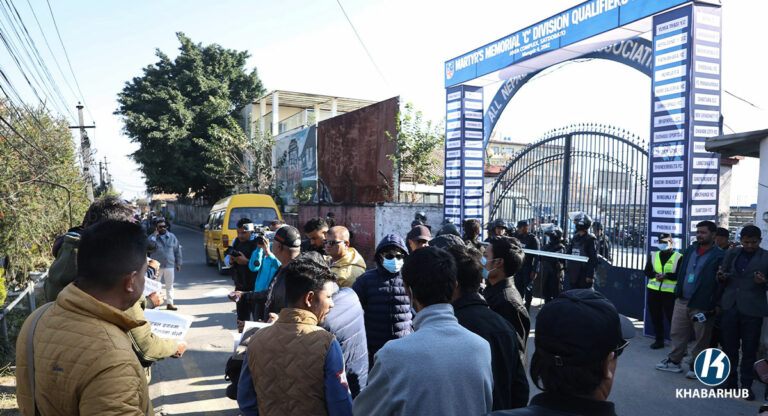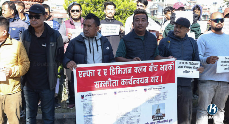 काठमाडौं– अखिल नेपाल फुटबल संघ (एन्फा)ले आफूहरूसँग गरेको सहमति कार्यान्वयनका लागि दबाब दिन भन्दै ए डिभिजन फुटबल क्लबहरूले एन्फा कम्लेक्स अगाडि धर्ना दिएका छन् ।