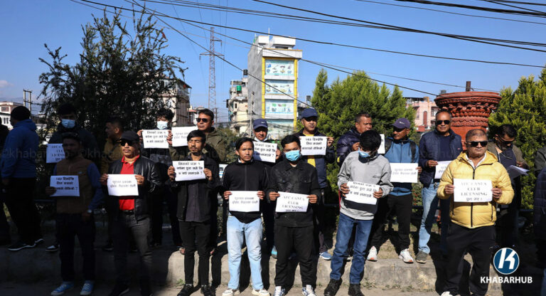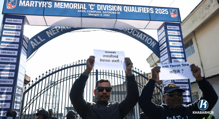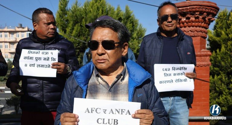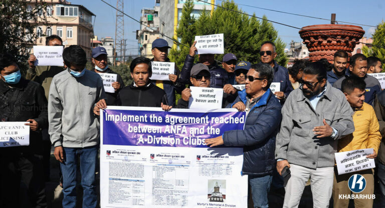 गत कार्तिक १७ गतेको छलफलमा भएको सहमति अनुसार एन्फा अघि नबढेको भन्दै ए डिभिजन फुटबल क्लबहरूले बिहीबार एन्फा कम्लेक्स अगाडी धर्ना दिएका हुन् ।