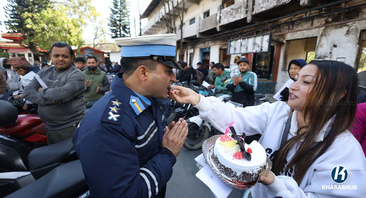 आफ्नो सवारी फिर्ता पाए पछि सवारी धनीहरूले केक काटेर ट्राफिकलाई धन्यवाद दिएका छन् ।