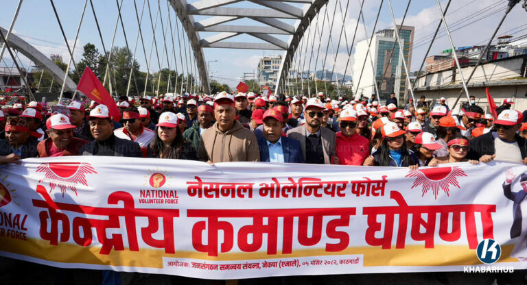 काठमाडौं– नेकपा एमालेले आज पार्टीमा नीति र नेतृत्वको सुरक्षाका लागि भन्दै नेसनल भोलेन्टियर फोर्स घोषणा गर्दै छ । फोर्स घोषणाअघि एमाले निकट युवाहरूले र्‍याली गरेका छन् ।