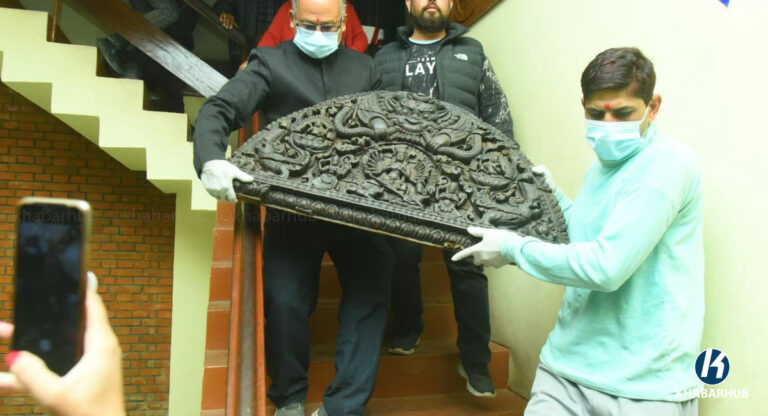 काठमाडौं– कुमारी घरबाट चोरी भएका तोरणहरूमध्ये एक तोरण बेलायतको बाराकाट ग्यालरीमा फेला परेर फिर्ता ल्याई हाल राष्ट्रिय संग्रहालयमा राखिएको थियो ।