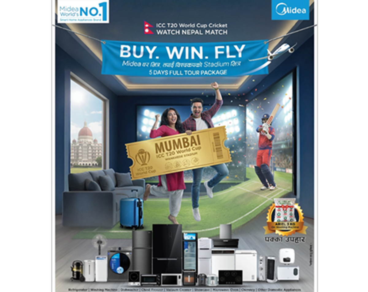 काठमाडौं– घरेलु उपकरण ब्रान्ड माइडियाले नेपाली उपभोक्ताका लागि एक रोमाञ्चक ग्राहक अभियान सुरु गरेको छ । कम्पनीका अनुसार ‘खरिद गर्नुहोस्, जित्नुहोस्, उड्नुहोस्’ यस अभियानको मुख्य आकर्षण भनेको आइसीसी टी-२० विश्वकप खेल मुम्बईको वानखेडे स्टेडियममा प्रत्यक्ष हेर्न पाउनु हो ।