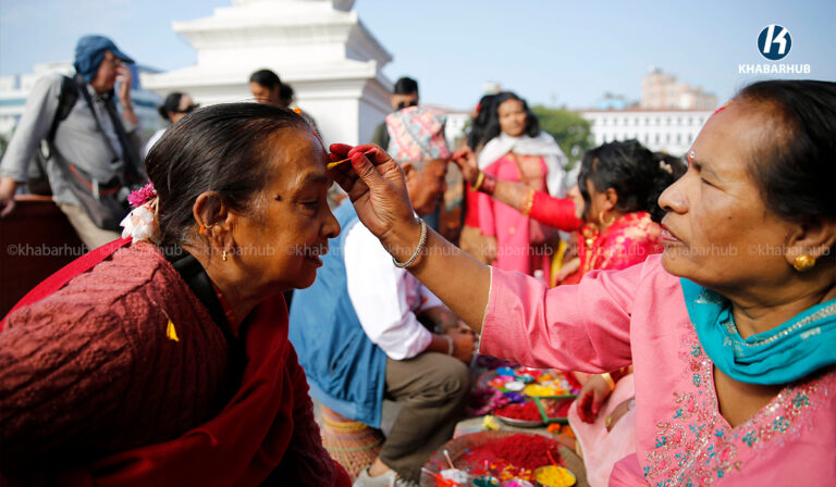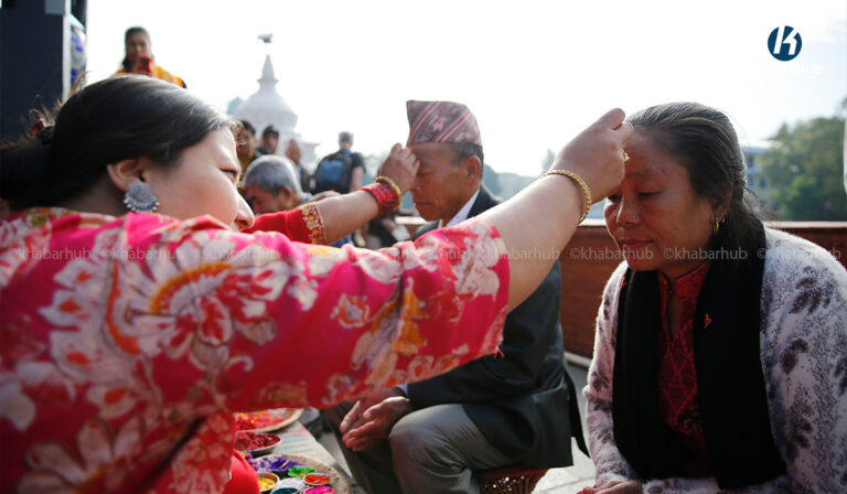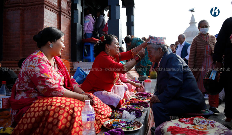 काठमाडौं- आज यमपञ्चकको प्रमुख दिन भाइटीका देशैभरी मनाइएको छ । आज विशेषगरी दिदीबहिनीहरुले दाजुभाइलाई सप्तरङ्गी टीका र माला लगाइ स्वास्थ्य, दीर्घायुको कामना गरी मनाउने चलन छ।