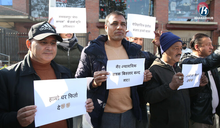 हेटौंडामा २५ गजको सडक सीमाभित्रका मुख्य बजार क्षेत्रका घरटहराहरु सरकारी पक्षले भत्काएपछि त्यहाँका स्थानीयहरूले प्रदर्शन गरेका हुन् ।