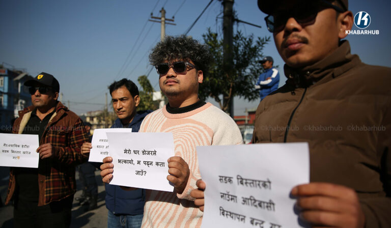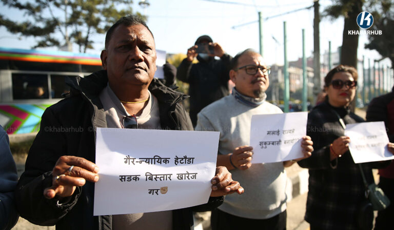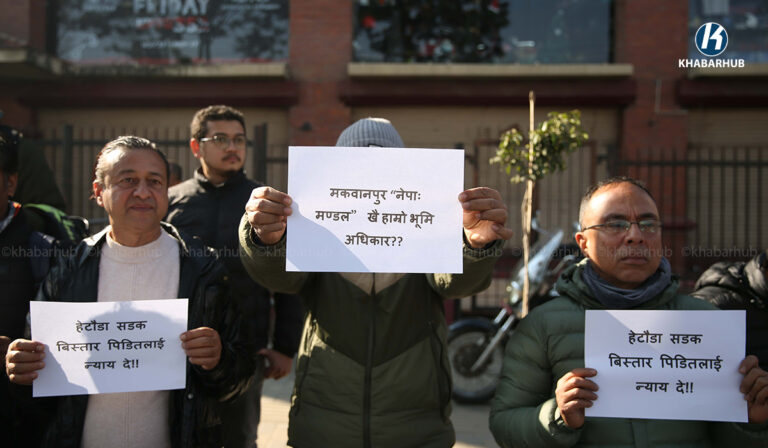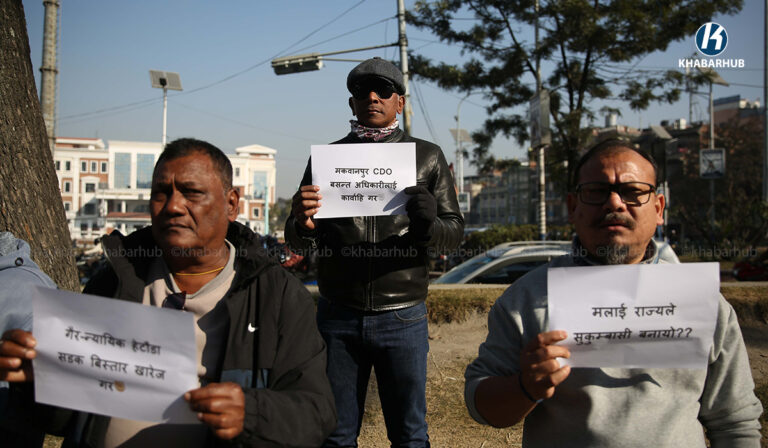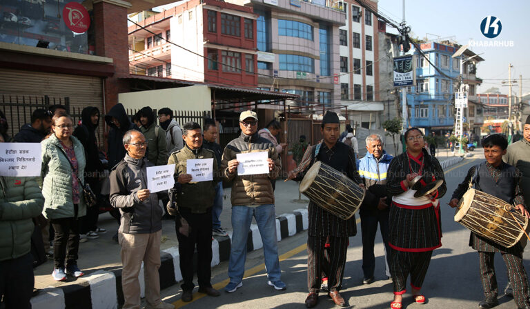 काठमाडौं– हेटौंडा सडक विस्तारका पीडितहरूले माइतीघरमा बाजासहित विरोध प्रदर्शन गरेका छन् । सडक विस्तारका लागि सरकारले निजी सम्पत्ति माथि डोजर चलाएको र पीडितलाई उचित क्षतिपूर्ति समेत उपलब्ध नगरेको उनीहरूको गुनासो छ ।