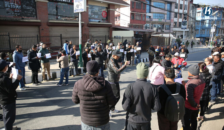 माइतीघरमा भेला भएर उनीहरूले प्ले कार्ड प्रदर्शन गरेर र धिमे बाजा बजाएर विरोध प्रदर्शन गरेका हुन् ।