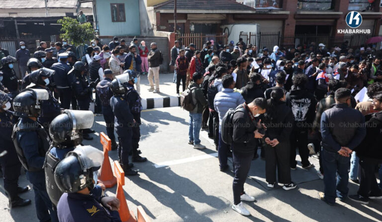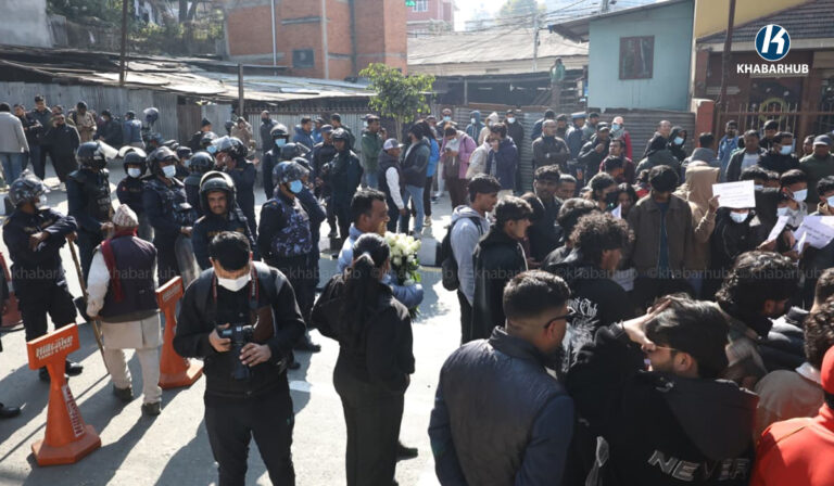 माइतीघरमा प्रहरीको घेरा भित्र निकोलस भुसाल लगायतले आज प्रदर्शन गरिरहेका छन्।