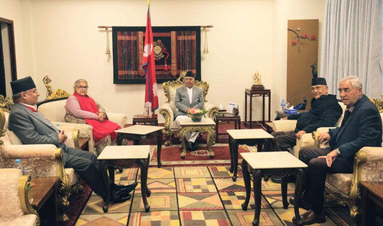 राष्ट्रपति साक्षी बसेर प्रधानमन्त्री र तीन शीर्ष नेताबीच पहिलो पटक प्रत्यक्ष संवाद हुँदै