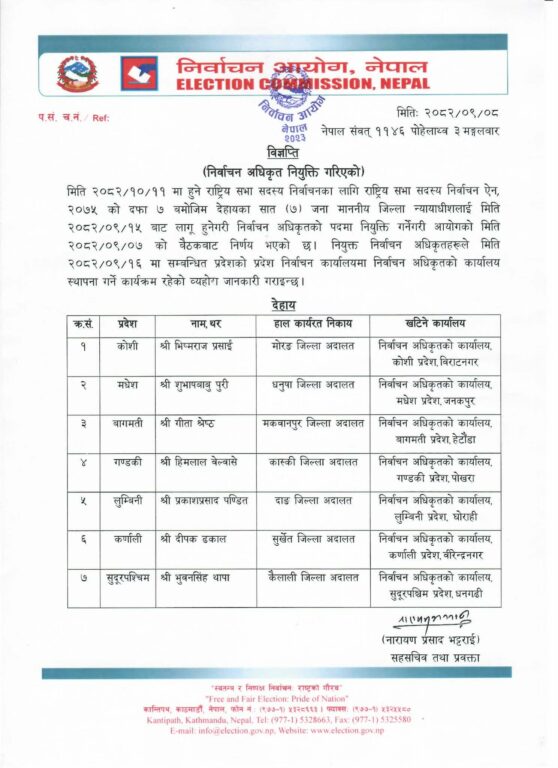 राष्ट्रियसभा चुनावका लागि ७ जना निर्वाचन अधिकृत नियुक्त « Khabarhub