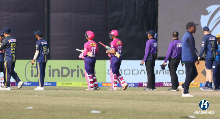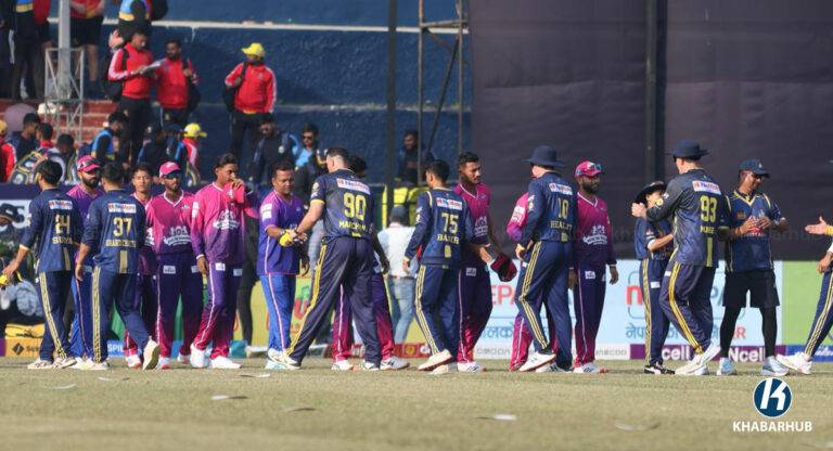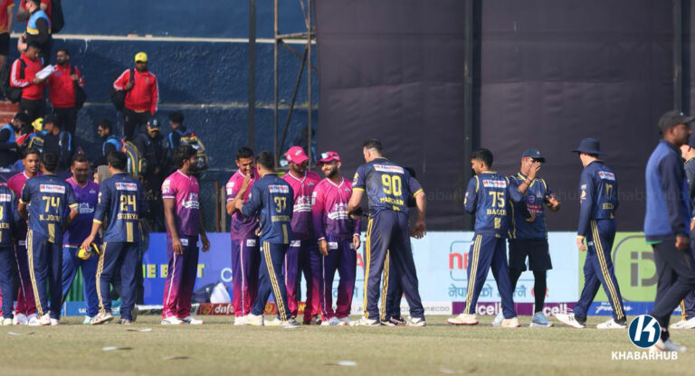 कीर्तिपुरस्थित त्रिवि अन्तर्राष्ट्रिय क्रिकेट रंगशालामा टस जितेर १३६ रनको लक्ष्यसहित जवाफी ब्याटिङमा उत्रिएको जनकपुरले निर्धारित २० ओभरमा ९ विकेट गुमाउँदै १२६ रन बनाएको हो ।