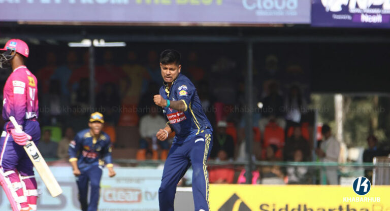 सूर्य तामाङले ओपनर आशिफ शेख र सञ्जय कृष्णमूर्ति महत्त्वपूर्ण विकेट लिए । मर्चेन्ट डे लाङ्गे र शुभम रञ्जनेले समान एक-एक विकेट लिए ।