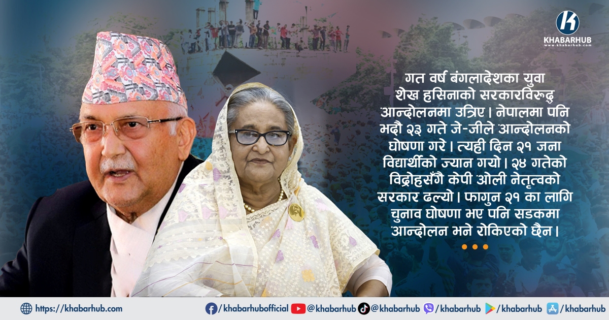 त्यसैको सिको गर्दै गत वर्ष बंगलादेशका युवाहरु शेख हसिनाको सरकारविरूद्ध आन्दोलनमा उत्रिए । हसिनामाथि शक्तिको दुरूपयोग गरेको आरोप थियो । ७६ वर्षीय उनले चार पटक लगातार चुनाव जितेकी थिइन् ।