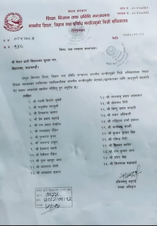 शिक्षा मन्त्रीसँग वार्ताका लागि सिंहदरबार छिर्‍यो आन्दोलित शिक्षकहरूको टोली « Khabarhub