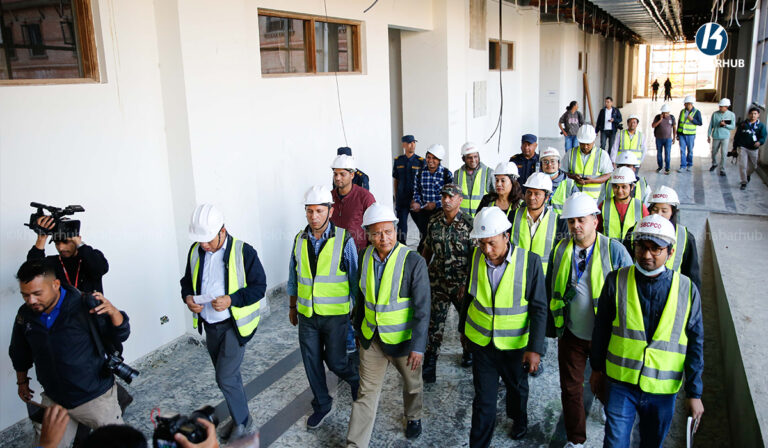 काठमाडौं– सहरी विकास, भौतिक पूर्वाधार मन्त्री कुलमान घिसिङले नयाँ संघीय संसद् भवनको निरीक्षण गरेका छन् ।