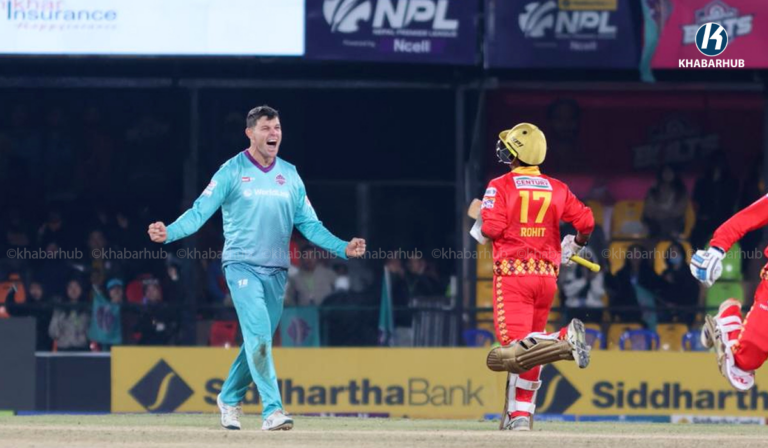 लुम्बिनीले लगालग विकेट लिएपछि काठमाडौंको ब्याटिङ संकटतिर, बाहिरिए ५ ब्याटर