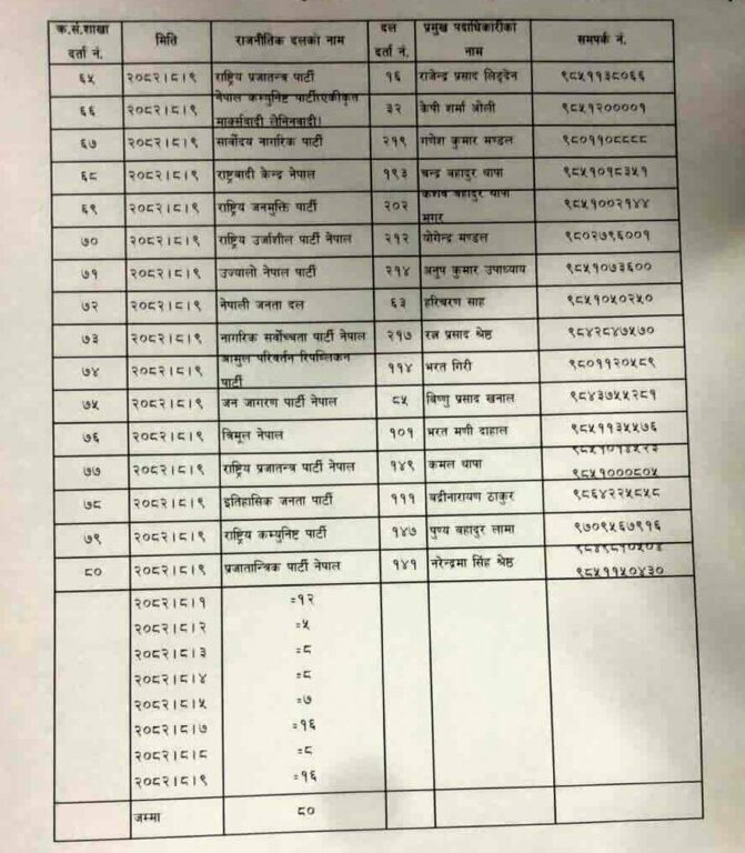 निर्वाचनका लागि दर्ता भए ८० दल