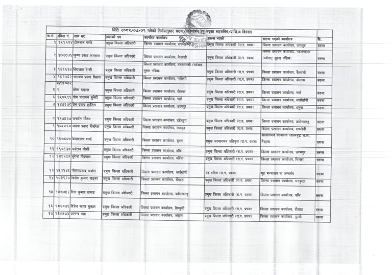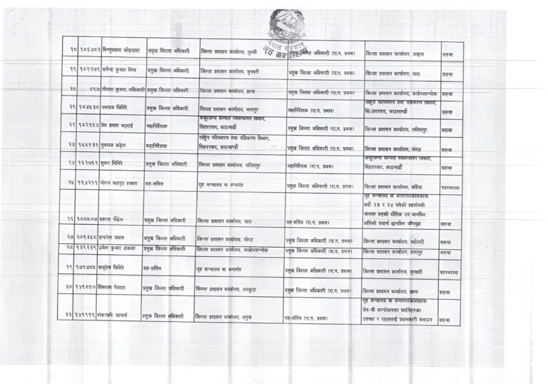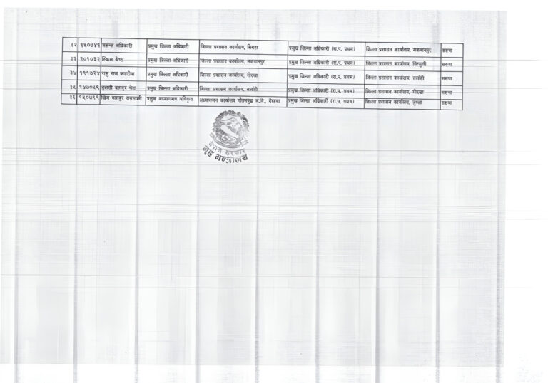 काठमाडौं- गृह मन्त्रालयले देशभरका ३६ जना प्रमुख जिल्ला अधिकारी (प्रजिअ)हरूको एकसाथ सरुवा गरेको छ।
