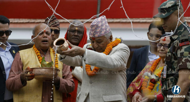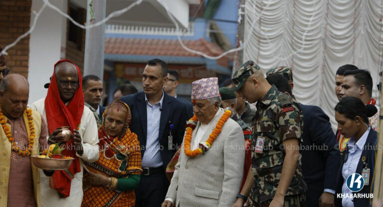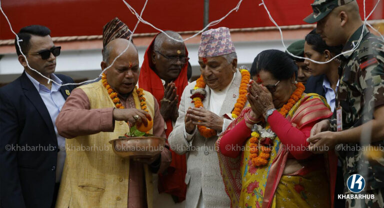 राष्ट्रपति पौडेलले पशुपति क्षेत्रस्थित गुह्वेश्वरी मन्दिर अघि बाग्मती किनार गौरीघाटमा तयार गरिएको छठ पूजास्थलमा पुगेर छठी माताको पूजा अर्चना गरेका हुन् ।