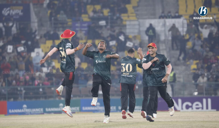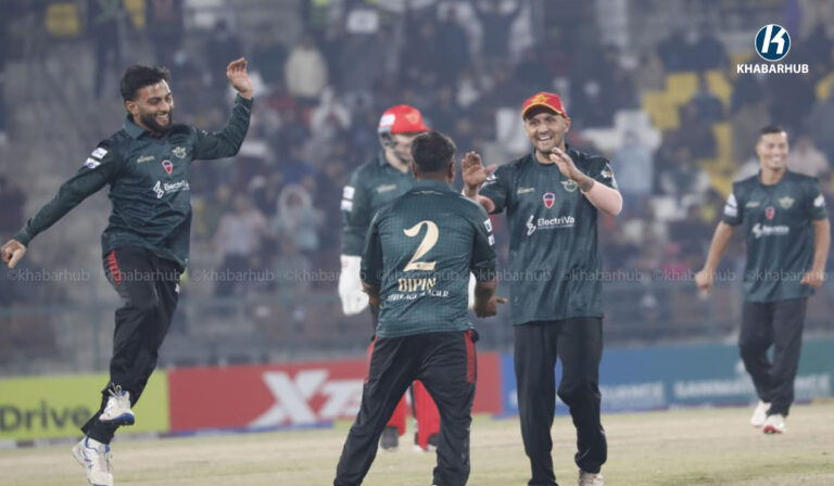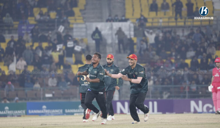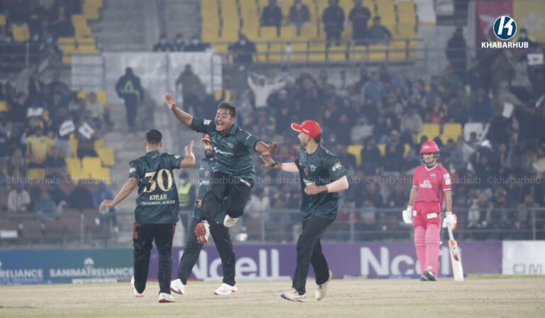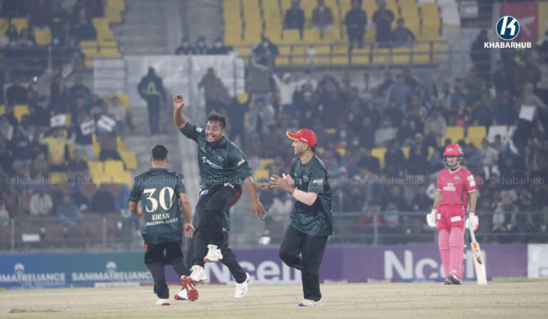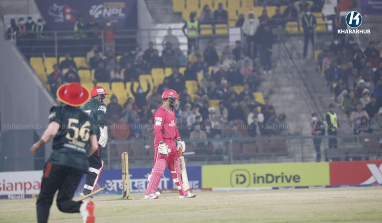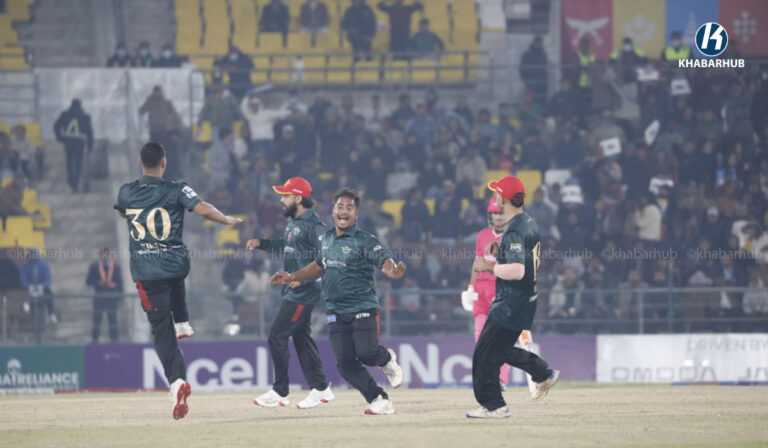 १५६ रनको लक्ष्य पछ्याउँदै जवाफी ब्याटिङमा उत्रिएको जनकपुरले ३ ओभरको अन्तिम बलमा ४ विकेट गुमाएको हो । यो टिमले २८ रनको दयनीय अवस्थामा छ ।