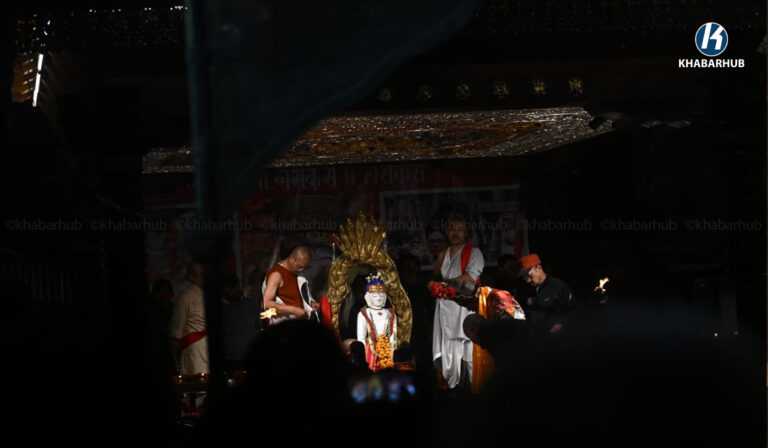 काठमाडौं– यस वर्षको दशैंमा परिवर्तन भएकी कुमारी आर्या तारा शाक्यको उपस्थितिमा सेतो मछिन्द्रनाथको स्नान विधि सम्पन्न भएको छ ।
