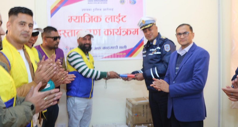 उक्त म्याजिक लाइटलाई लायन्स कल्ब अफ काठमाडौँ थलीले खरिद गरी आज जिल्ला प्रशासन कार्यालयमा एक विशेष कार्यक्रमको आयोजना गरी काठमाडौँ उपत्यका ट्राफिक प्रहरी प्रमुख एवं प्रहरी वरिष्ठ उपरीक्षक नवराज अधिकारीलाई हस्तान्तरण गरिएको हो ।