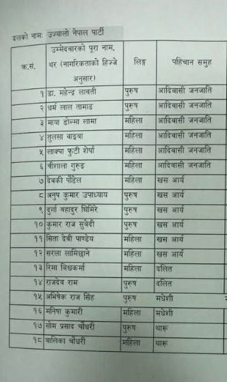 दुई दलबीच एकताको सम्झौता भएलगत्तै उज्यालो नेपालले आफ्नो भागमा परेको १८ जनाको नाम दिएको हो ।