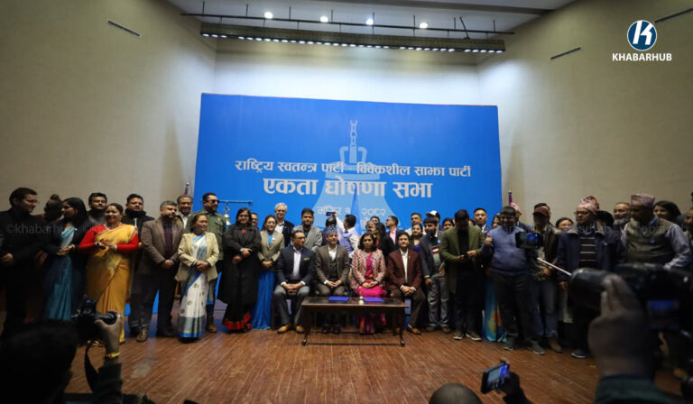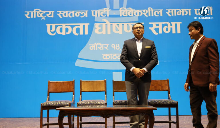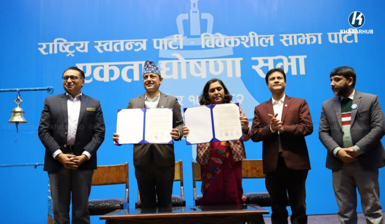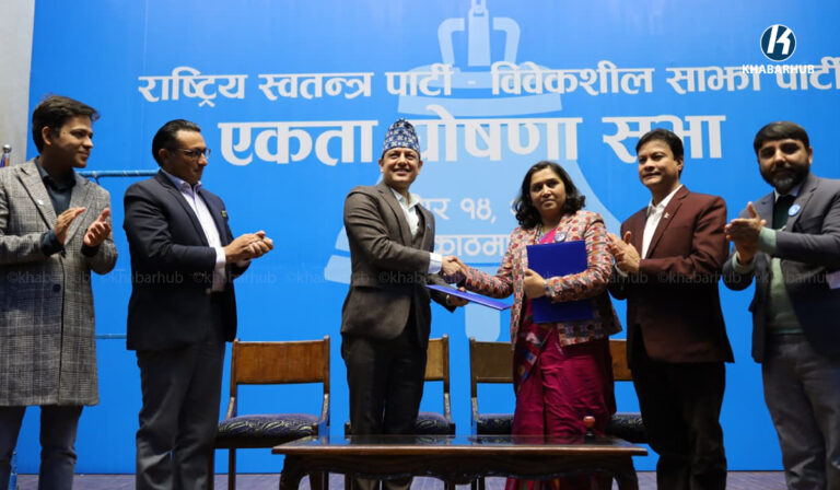 काठमाडौं– राष्ट्रिय स्वतन्त्र पार्टी (रास्वपा) र विवेकशील साझा पार्टीबीच एकता घोषणा भएको छ । काठमाडौंमा आयोजित एकता घोषणा सभामा दुई दलका नेताहरूले एकीकरणसम्बन्धी सहमतिमा हस्ताक्षर गरेका छन् ।