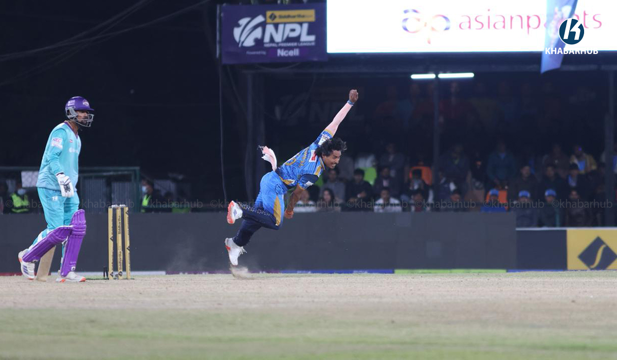 काठमाडौं- दोस्रो संस्करणको नेपाल प्रिमियर लिग एनपीएल अन्तर्गत आइतबार जारी खेलमा काठमाडौं गोर्खाजले तेस्रो विकेट गुमाएको छ । इनिङको १० ओभर १ बलमा काठमाडौंका मिलन्द कुमार आउट भए । विपिन शर्माको बलमा उनी रन आउट भएका हुन् । आउट हुनुअघि उनले १९ बलमा १५ रन जोडे ।