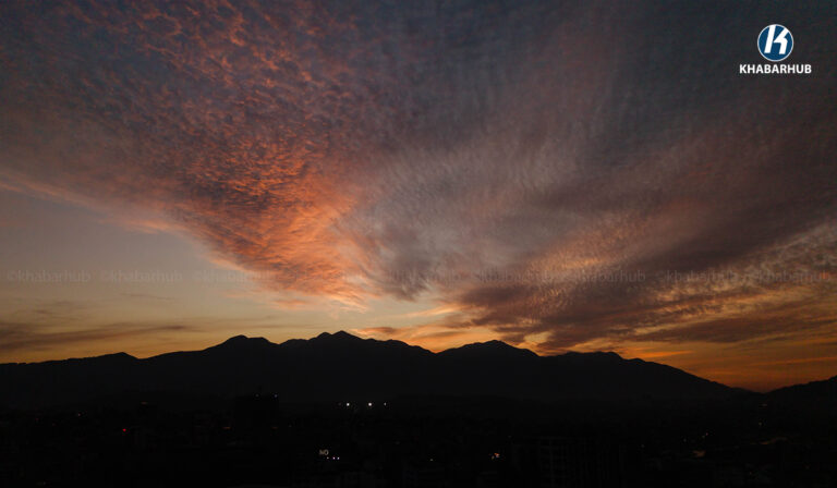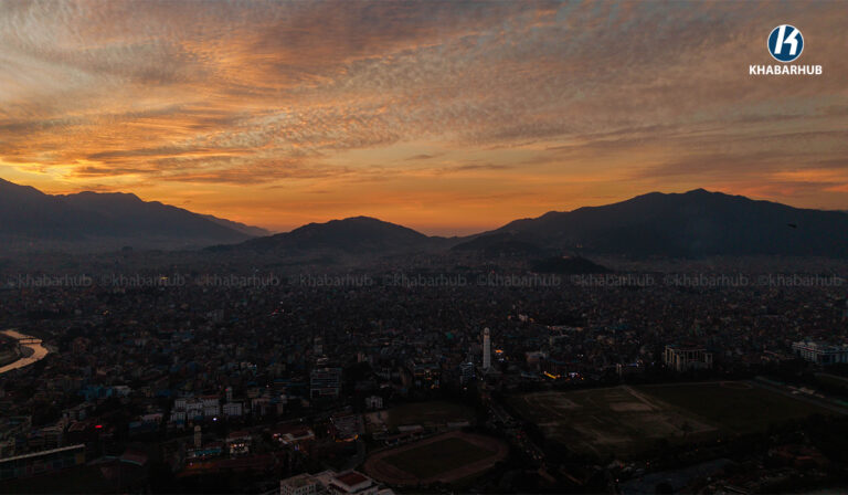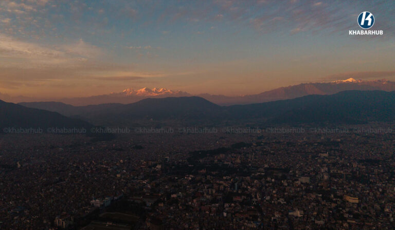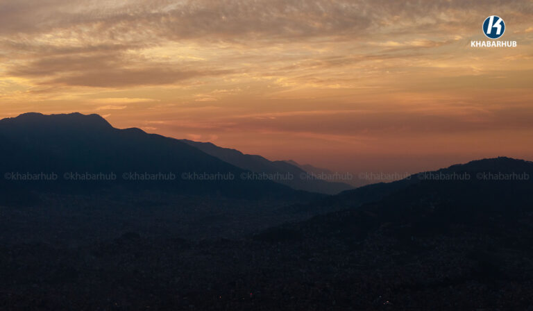 उपत्यकामा चिसो बढेसँगै साझा परेपछि सूर्यास्तको फरक–फरक रंगले काठमाडौँको आकाश मिनेट–मिनेटमा बदलिन थालेको छ । अस्ताउँदो सूर्यको सुनौलो किरण हिमालको हिउँमा परेर झनै चम्किने दृश्यले उपत्यकावासीलाई मोहित बनाइरहेको छ ।