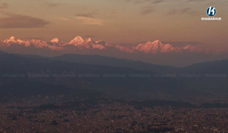काठमाडौं– हिजोआज काठमाडौँ उपत्यकाबाट दिनहुँजसो हिमालहरू अवलोकन गर्न सकिन्छ । वरिपरि देखिने टाढाका सेताम्मे हिमालहरू साँझतिर झनै मनमोहक देखिन्छन् ।