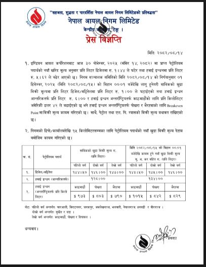 काठमाडौं – नेपाल आयल भोलिदेखि लागु हुनेगरी पेट्रोलियम पदार्थको नयाँ