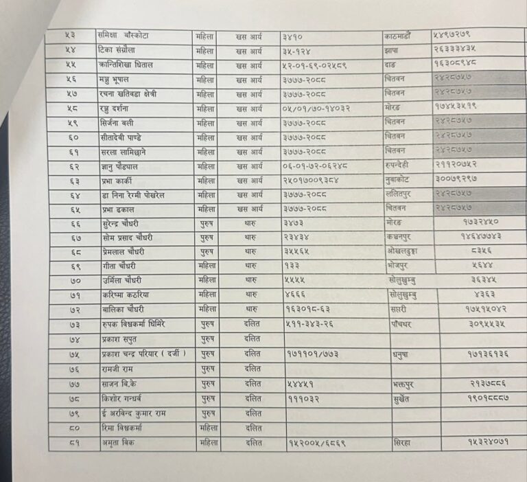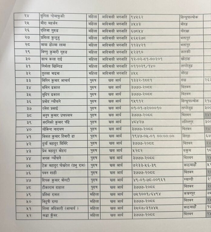 यश सूचीमा बालेनका ४० जना र कुलमानको उज्यालो नेपालका १८ जनालाई राखिएको छ । अरू रास्वपाका छन् ।