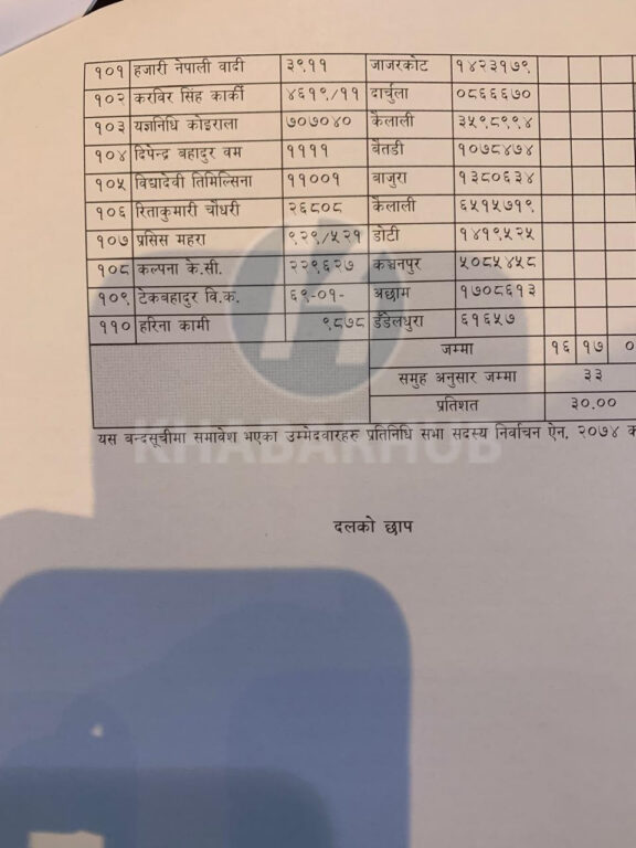 यस्तो छ ११० जनाको सूची