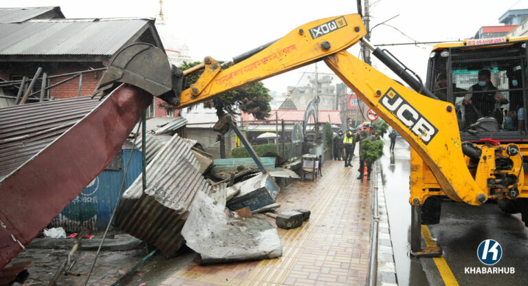 सम्पदा क्षेत्रमा संरचना निर्माण गरी गैरकानुनी रूपमा भाडामा लगाइएको कारण डोजर लगाई भत्काइएको महानगरले जानकारी दिएको छ ।