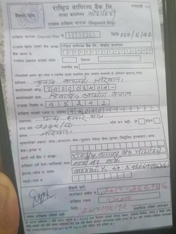 काजिबहादुर कार्कीले खर्च बुझाएको प्रमाण