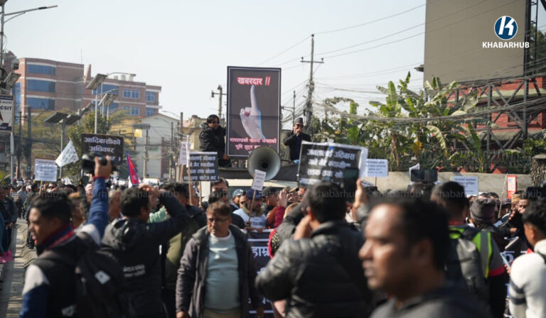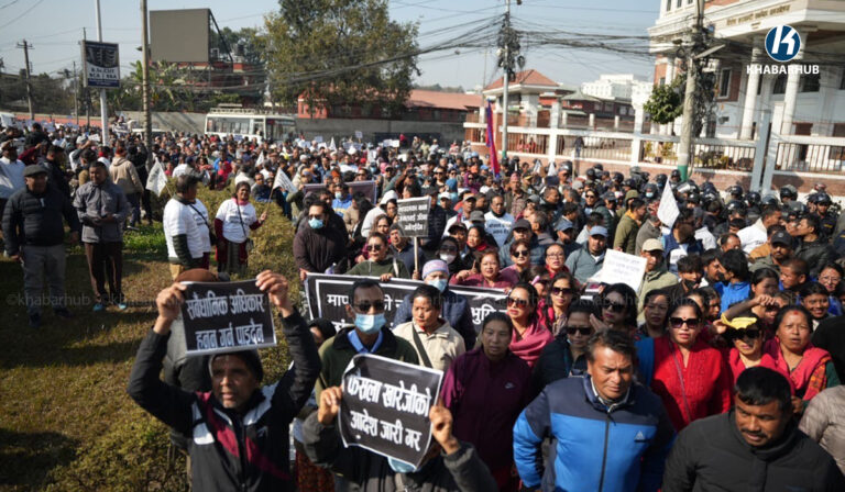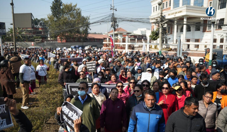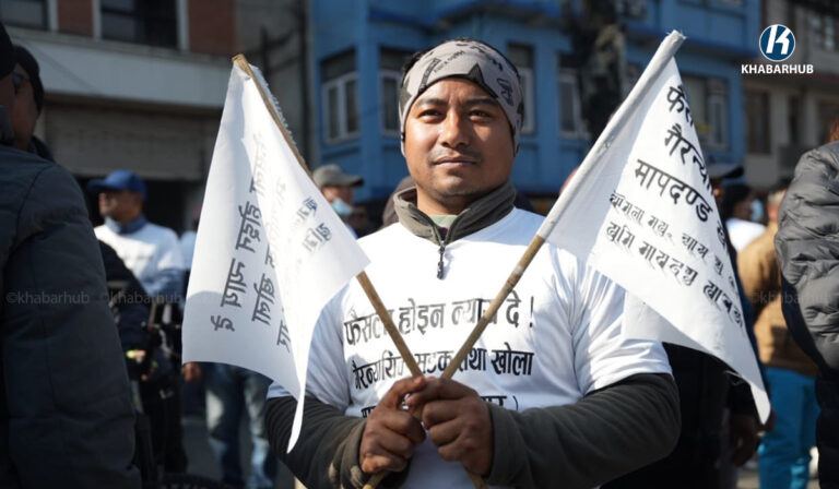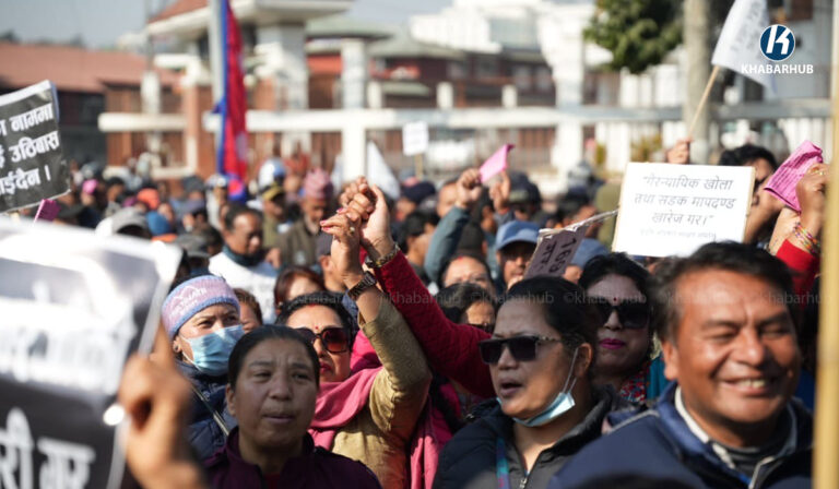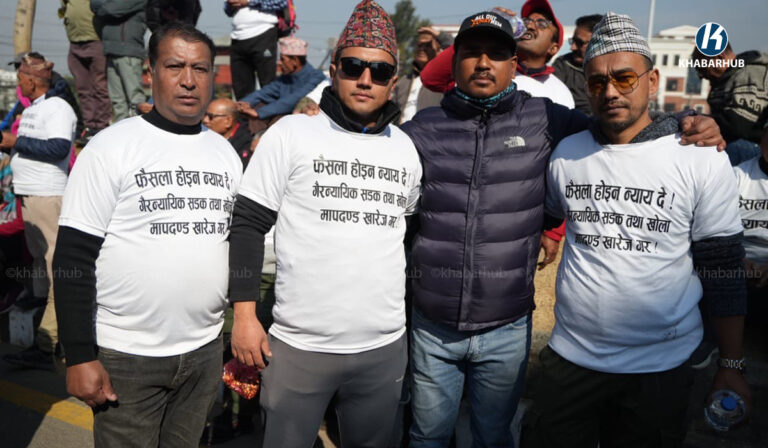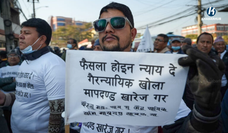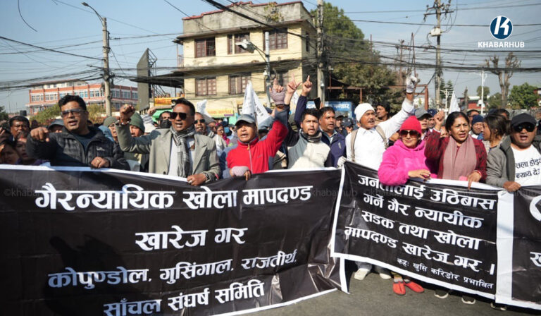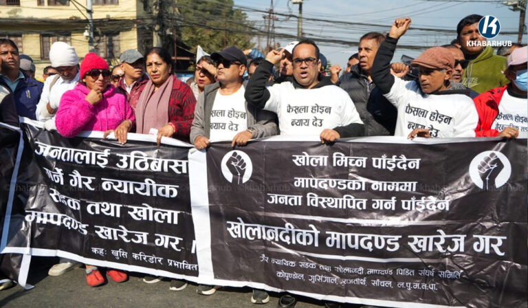 खोला किनारको मापदण्ड खारेजीको माग गर्दै प्रदर्शन (तस्बिरहरू)  « Khabarhub