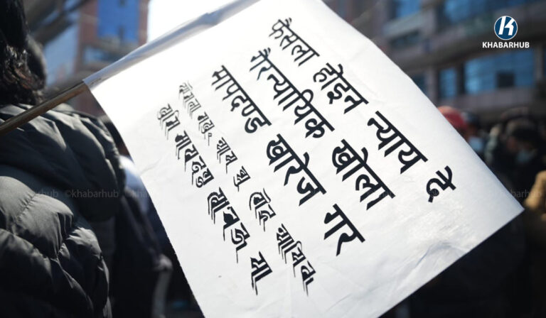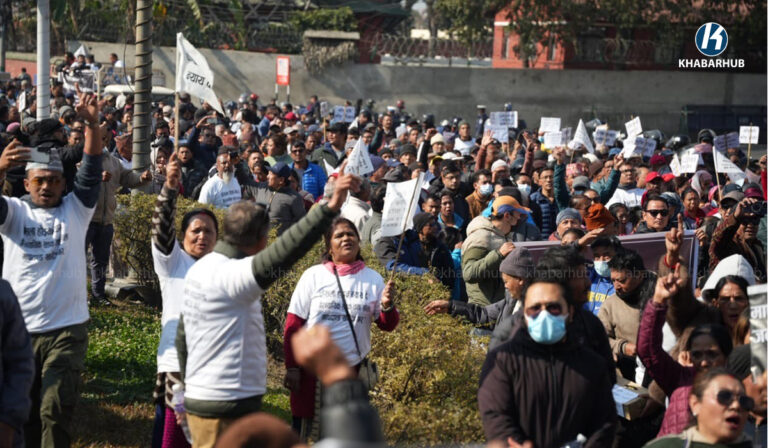 आज माइतीघर मण्डलामा पीडितहरूले नाराबाजी गर्दै प्रदर्शन गरेका हुन् ।