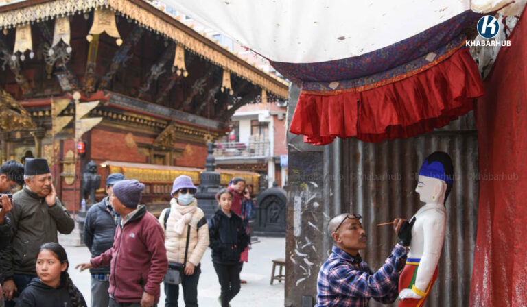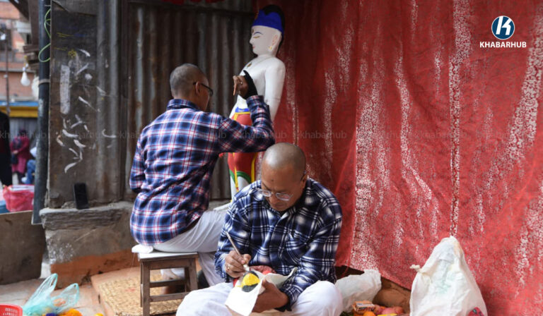 सेतो मच्छिन्द्रनाथको मूर्तिमा रंगरोगन गरिँदै (तस्बिरहरू)