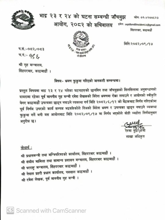 काठमाडौं– भाद्र २३ र २४ को घटनासम्बन्धी जाँचबुझ आयोगले पूर्व गृहमन्त्री रमेश लेखकमाथिको प्रतिबन्ध फुकुवा गरेको छ ।