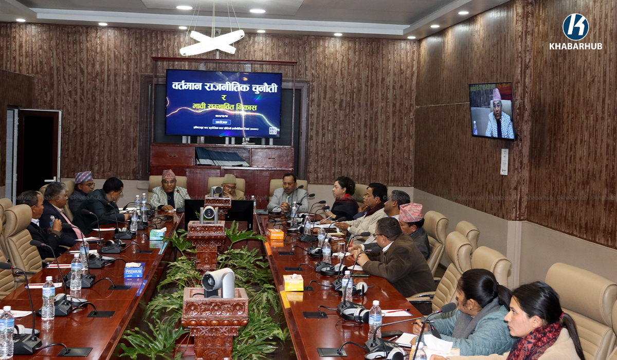 त्यसैले निर्वाचन अघि बढीरहँदा पनि राज्यमा पछिल्लो पुस्ताले उठाएको आवाज अलपत्र नपरोस् र वर्तमान चुनौतीपछि सम्भावित निकास के होला भन्ने विषयमा घनिभूत बहस गर्न आवश्यक देखिएको छ । सोही सन्दर्भमा आधारित रहेर इन्स्टिच्युट फर स्ट्राटेजिक एन्ड सोसियो इकोनोमिक रिसर्चले बिहीबार विभिन्न राजनीतिक दलका नेतृत्व र सम्बन्धित क्षेत्रका विज्ञहरूको सहभागितामा ‘वर्तमान राजनीतिक चुनौती र भावी सम्भावित निकास’ सञ्चालन गरेको थियो ।