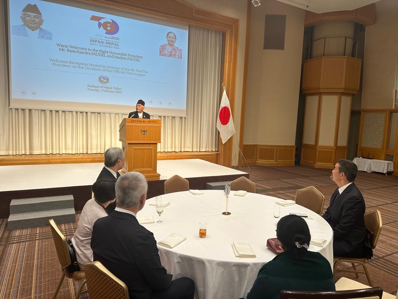 जापानको औपचारिक भ्रमणमा रहनुभएका राष्ट्रपति पौडेलले नेपाली राजदूतावासद्वारा आज यहाँ आयोजित स्वागत समारोहलाई सम्बोधन गर्दै सो धारणा व्यक्त गरेका हुन् । “आगामी दिनमा यहाँबाट आर्जन गरेको ज्ञान, सीप, पुँजी र प्रविधि स्वदेशमा प्रयोग गरी समुन्नत नेपालको सपना साकार पार्न थप योगदान दिनुहुनेछ भन्ने मैले अपेक्षा गरेको छु”, राष्ट्रपति पौडेलले भने ।