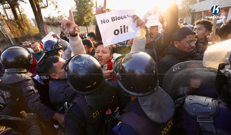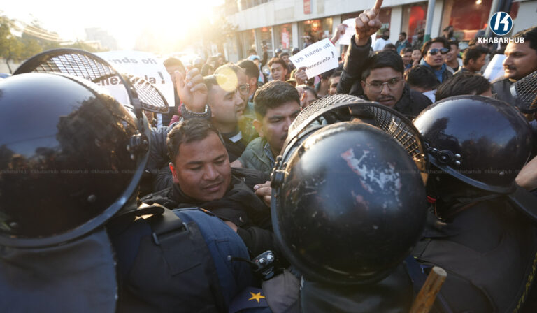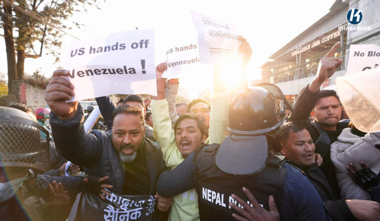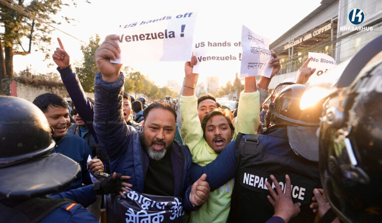 काठमाडौँ– भेनेजुएलामा अमेरिकाले गरेको सैन्य हस्तक्षेपको विरोधमा संयुक्त विद्यार्थी संगठनले आज महाराजगन्जस्थित अमेरिकी दूतावास अगाडि प्रदर्शन गरेका छन्।